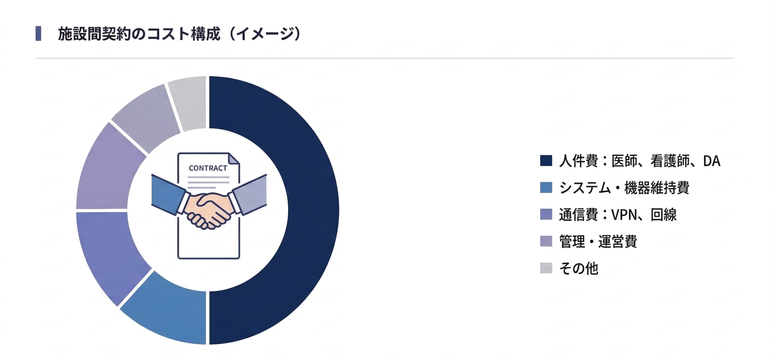 施設間契約では、人件費・システム維持費・通信費などを含む支援コストをどう分担するかを両施設が協議して決めます。公定価格は存在しないため、施設の規模や支援の内容・頻度に応じて個別に設定することになります。